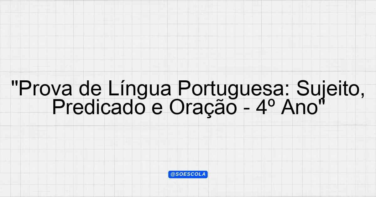 Continue lendoTema: sujeito predicado/oração;Etapa/Série: 4º anoDisciplina: Língua PortuguesaQuestões: 20 “`html Prova de Língua Portuguesa – 4º Ano Tema: Sujeito, Predicado e