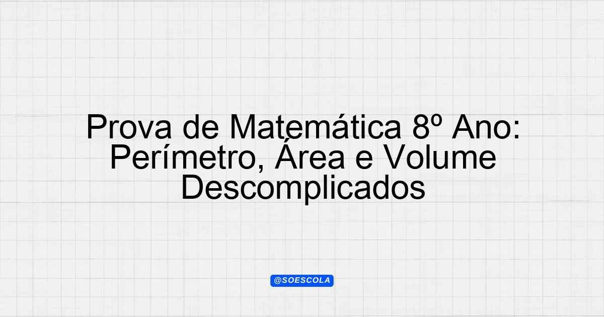 Continue lendoTema: perimetro area e volumeEtapa/Série: 8º anoDisciplina: MatemáticaQuestões: 4 Prova de Matemática – 8º Ano Tema: Perímetro, Área e Volume
