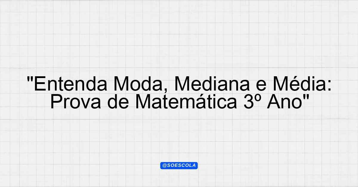 Continue lendoTema: Moda mediana e mediaEtapa/Série: 3º ano – Ensino MédioDisciplina: MatemáticaQuestões: 3 Prova de Matemática: Moda, Mediana e Média –