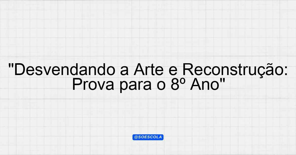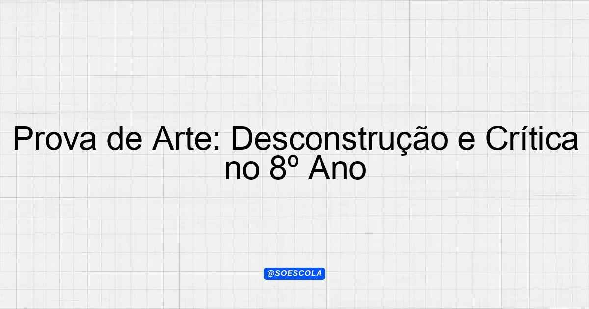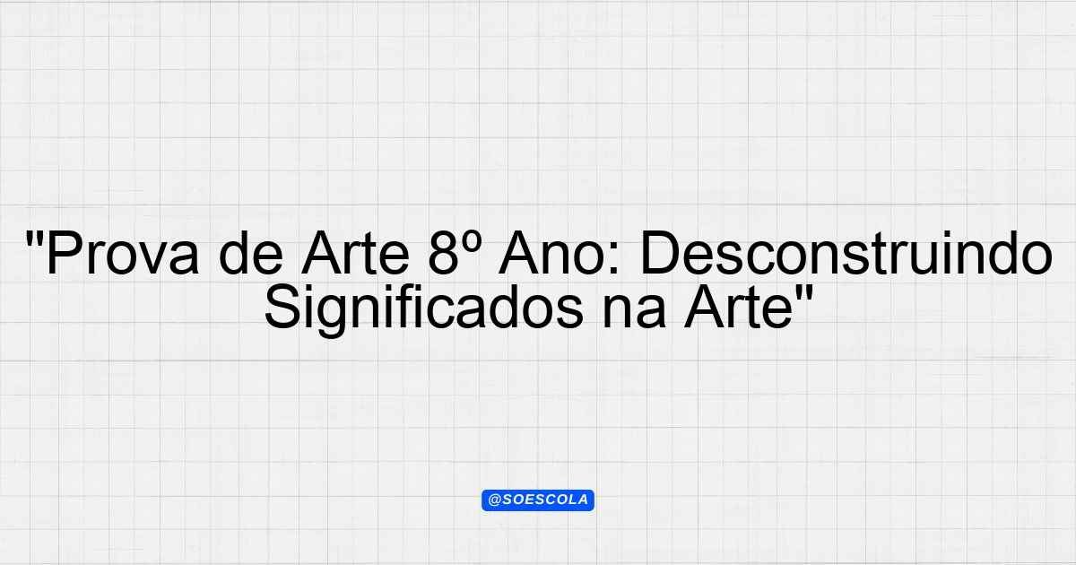 Continue lendoTema: arte e desconstruçãoEtapa/Série: 8º anoDisciplina: ArteQuestões: 10 Prova de Arte – 8º Ano Tema: Arte e Desconstrução Instruções: Leia