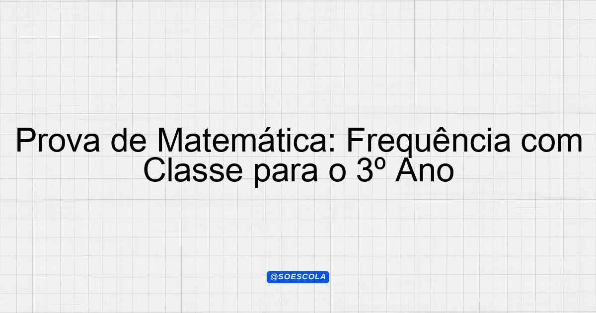 Continue lendoTema: Frequência com classeEtapa/Série: 3º ano – Ensino MédioDisciplina: MatemáticaQuestões: 3 Prova de Matemática – 3º Ano do Ensino Médio