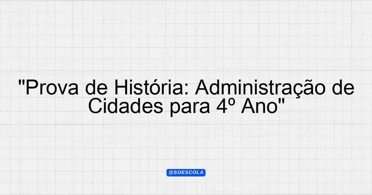 Continue lendoTema: ADMINISTRAÇÃO DE UMA CIDADEEtapa/Série: 4º anoDisciplina: HistóriaQuestões: 15 Prova de História – 4º Ano Tema: Administração de uma Cidade