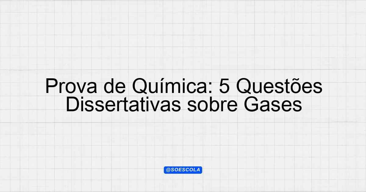 Continue lendoTema: GasesEtapa/Série: 2º ano – Ensino MédioDisciplina: QuímicaQuestões: 5 Prova de Química: Gases Aluno: _______________________________ Data: ___/___/_____ Turma: _____________________________ A