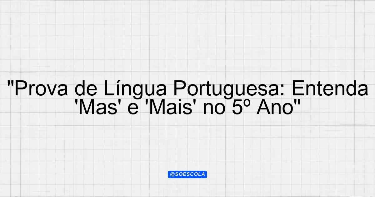 Continue lendoTema: mas e maisEtapa/Série: 5º anoDisciplina: Língua PortuguesaQuestões: 20 Prova de Língua Portuguesa – 5º Ano Tema: Uso de “mas”
