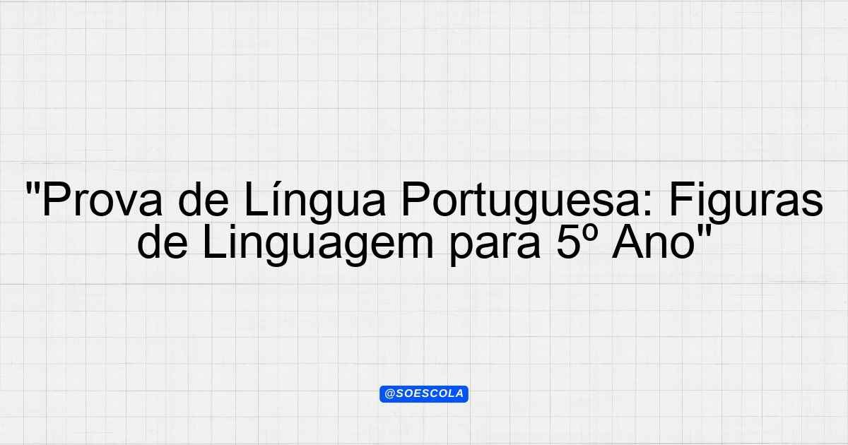 Continue lendoTema: figura de linguagemEtapa/Série: 5º anoDisciplina: Língua PortuguesaQuestões: 10 Prova de Língua Portuguesa: Figuras de Linguagem Aluno(a): _______________________________________ Data: ____/____/____