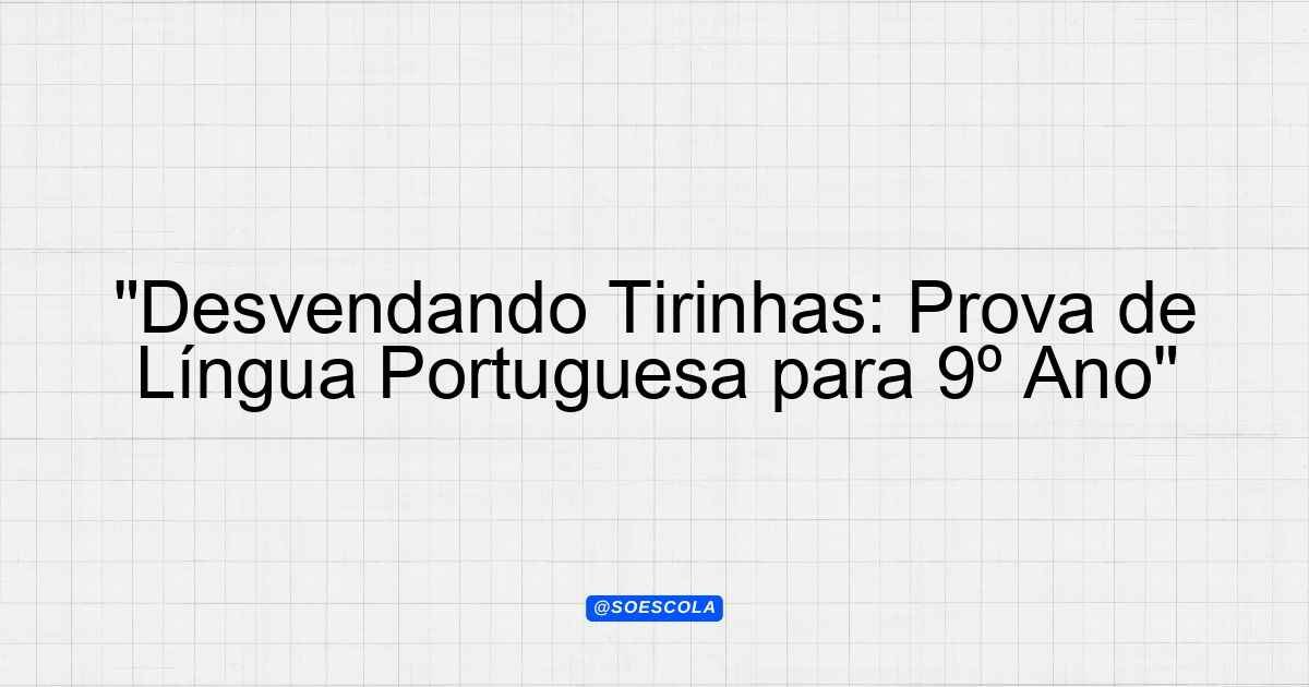 Continue lendoTema: tirinhaEtapa/Série: 9º anoDisciplina: Língua PortuguesaQuestões: 10 Prova de Língua Portuguesa – 9º Ano Tema: Tirinhas — As tirinhas são
