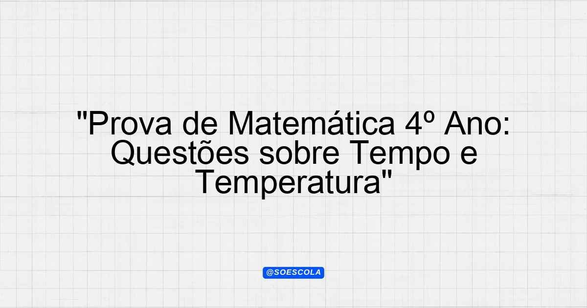 Continue lendoTema: Medidas de tempo , medidas de temperatura, Sistema monetário brasileiro, probabilidade e estatísticasEtapa/Série: 4º anoDisciplina: MatemáticaQuestões: 10 Prova de