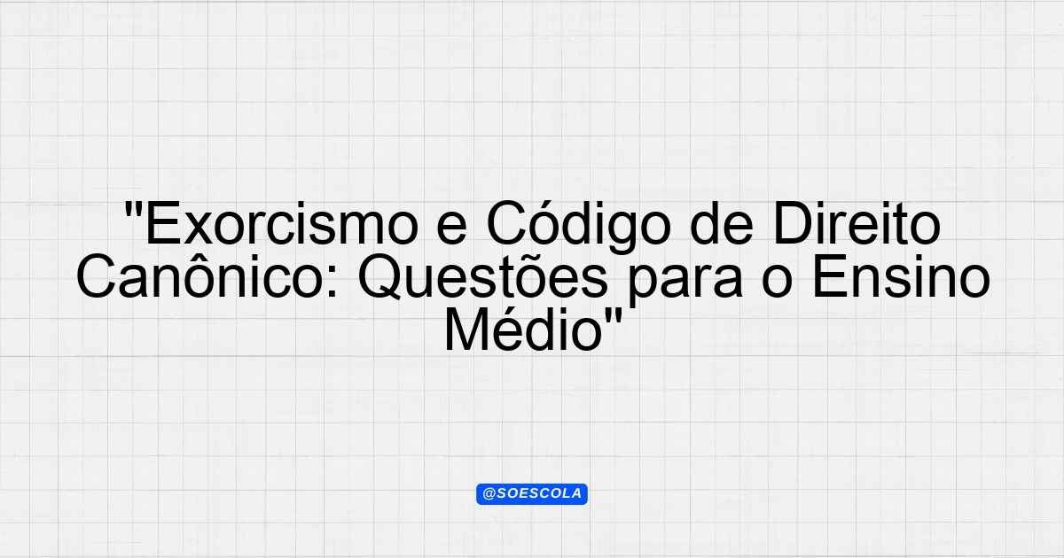 “Exorcismo e Código de Direito Canônico: Questões para o Ensino Médio”