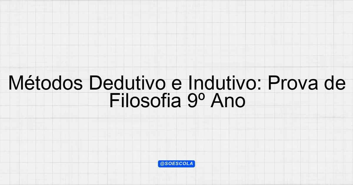 Continue lendoTema: Método Dedutivo e IndutivoEtapa/Série: 9º anoDisciplina: FilosofiaQuestões: 8 Prova de Filosofia – 9º Ano Tema: Método Dedutivo e Indutivo