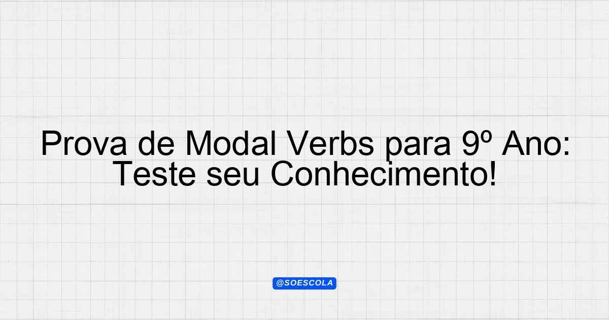 Continue lendoTema: modal verbsEtapa/Série: 9º anoDisciplina: Língua InglesaQuestões: 14 Prova de Língua Inglesa – Modal Verbs Aluno(a): _________________________ Data: _________________________ Série: