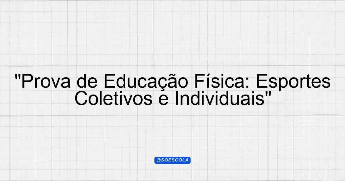 Continue lendoTema: esporte coletivo e individualEtapa/Série: 3º ano – Ensino MédioDisciplina: Educação FísicaQuestões: 20 Prova de Educação Física – 3º Ano