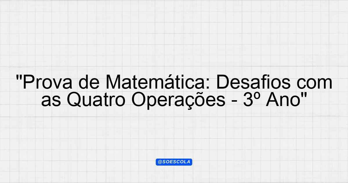 Continue lendoTema: Problemas com as quatro operaçõesEtapa/Série: 3º anoDisciplina: MatemáticaQuestões: 8 Prova de Matemática – 3º Ano Tema: Problemas com as