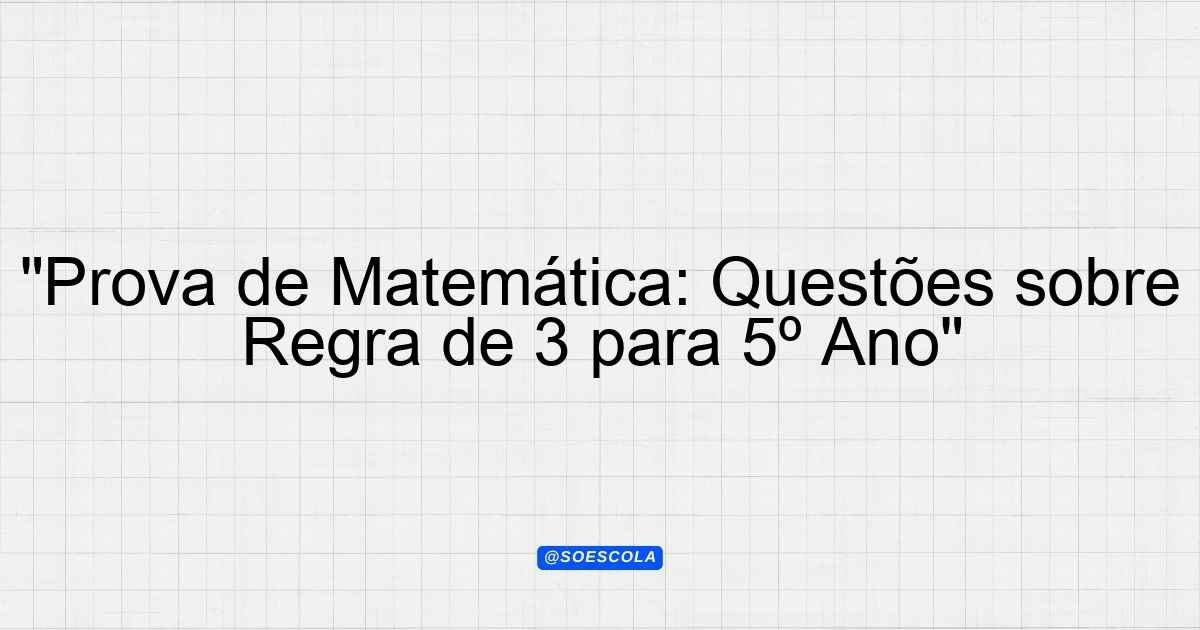 Continue lendoTema: regra de 3Etapa/Série: 5º anoDisciplina: MatemáticaQuestões: 20 “`html Prova de Matemática – Regra de 3 5º Ano Instruções: Leia
