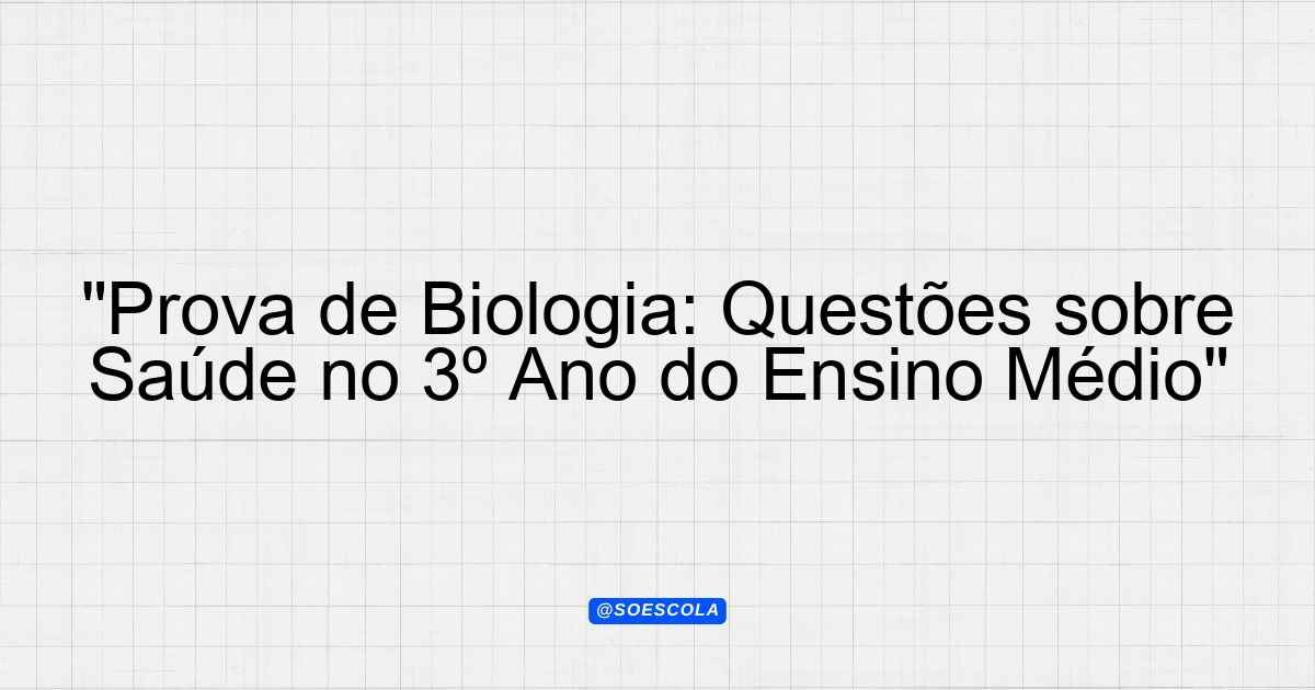 Continue lendoTema: saúdeEtapa/Série: 3º ano – Ensino MédioDisciplina: BiologiaQuestões: 3 Prova de Biologia – 3º Ano do Ensino Médio Tema: Saúde