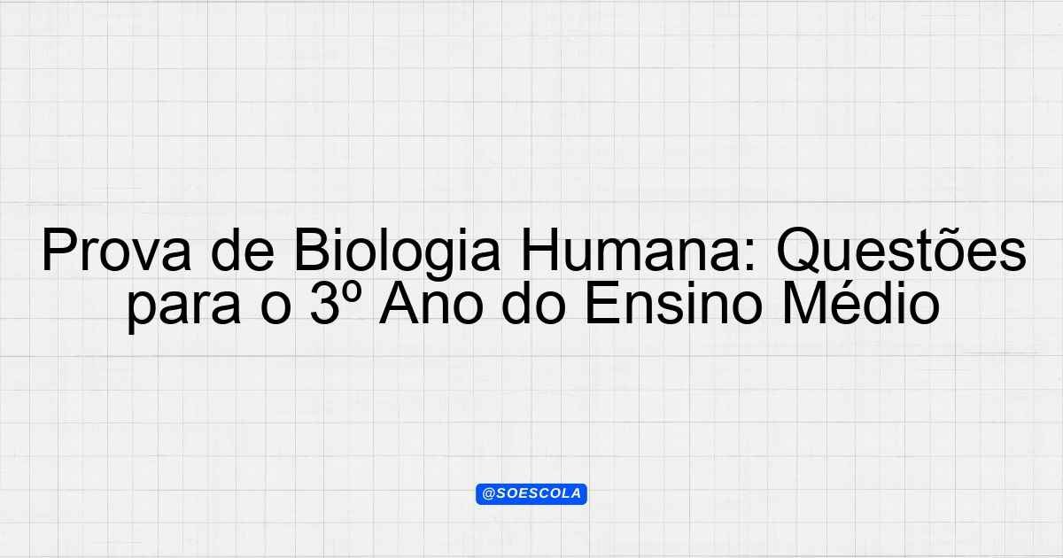 Continue lendoTema: Biologia humanaEtapa/Série: 3º ano – Ensino MédioDisciplina: BiologiaQuestões: 3 Prova de Biologia: Biologia Humana Data: ________ Nome: ______________________ Disciplina: