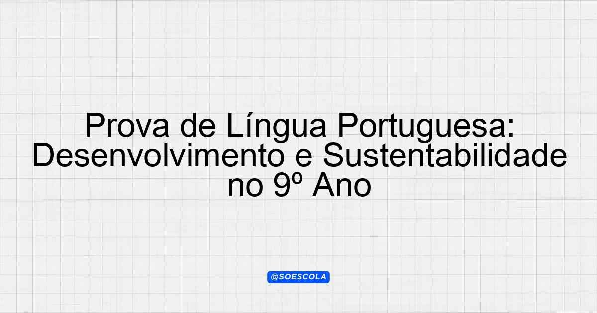 Continue lendoTema: desenvolvimento e sustentabilidadeEtapa/Série: 9º anoDisciplina: Língua PortuguesaQuestões: 5 Prova de Língua Portuguesa – 9º Ano Tema: Desenvolvimento e Sustentabilidade