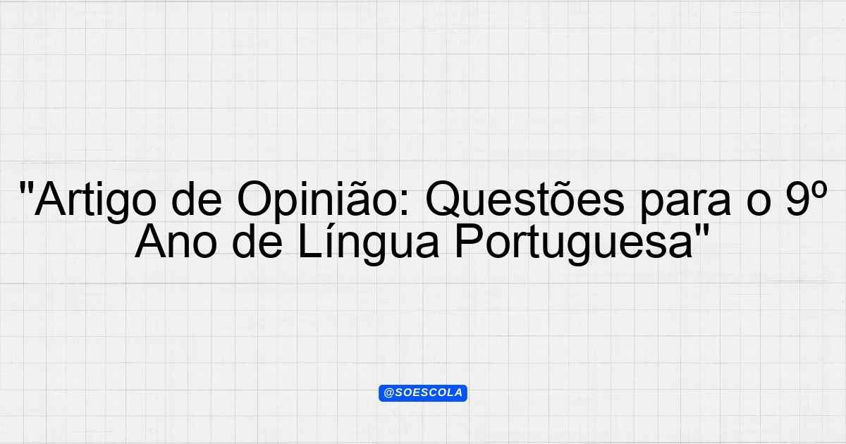 Continue lendoTema: gênero: artigo de opiniãoEtapa/Série: 9º anoDisciplina: Língua PortuguesaQuestões: 5 Prova de Língua Portuguesa – 9º Ano Tema: Gênero –
