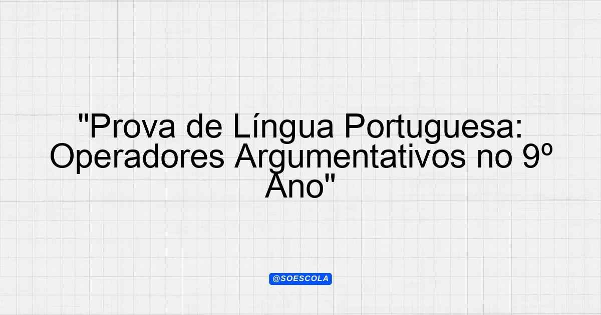 Continue lendoTema: o uso de operadores argumentativos no artigo de opiniãoEtapa/Série: 9º anoDisciplina: Língua PortuguesaQuestões: 5 Prova de Língua Portuguesa –
