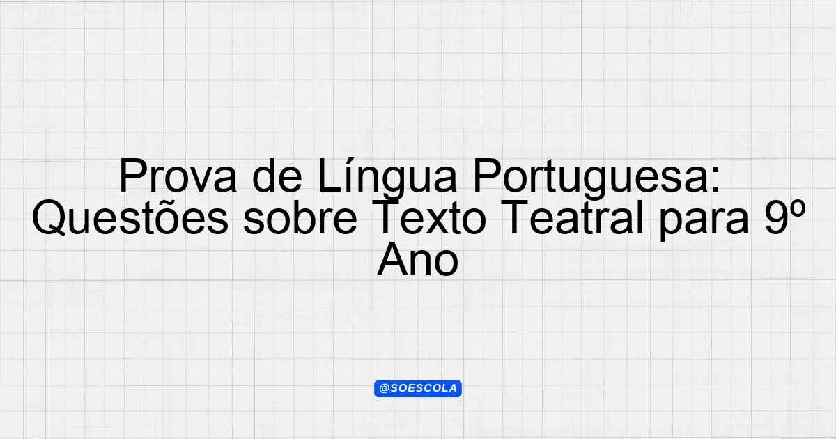 Continue lendoTema: gênero: texto teatralEtapa/Série: 9º anoDisciplina: Língua PortuguesaQuestões: 5 Prova de Língua Portuguesa – 9º Ano Tema: Gênero – Texto