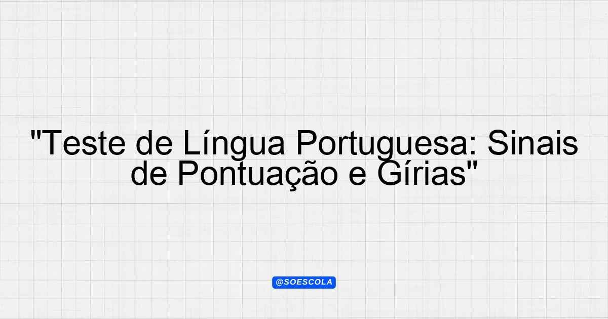 Continue lendoTema: sinais de pontuação e gíriasEtapa/Série: 9º anoDisciplina: Língua PortuguesaQuestões: 10 Prova de Língua Portuguesa: Sinais de Pontuação e Gírias