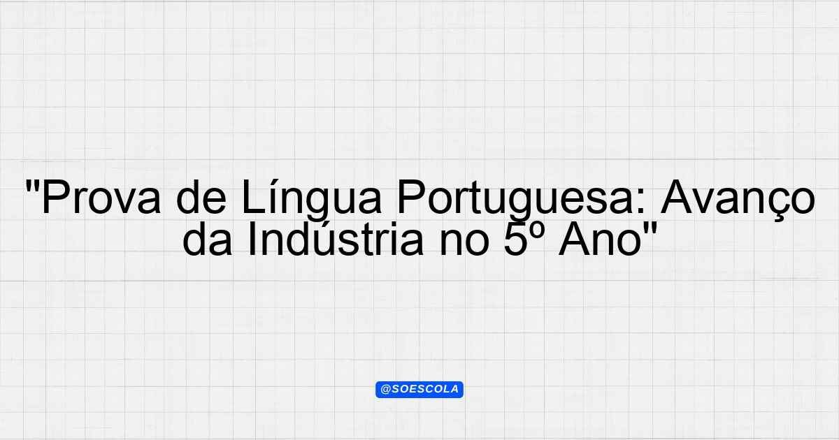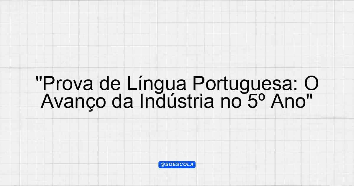 Continue lendoTema: a vanço da industriaEtapa/Série: 5º anoDisciplina: Língua PortuguesaQuestões: 20 Prova de Língua Portuguesa – 5º Ano Tema: O Avanço