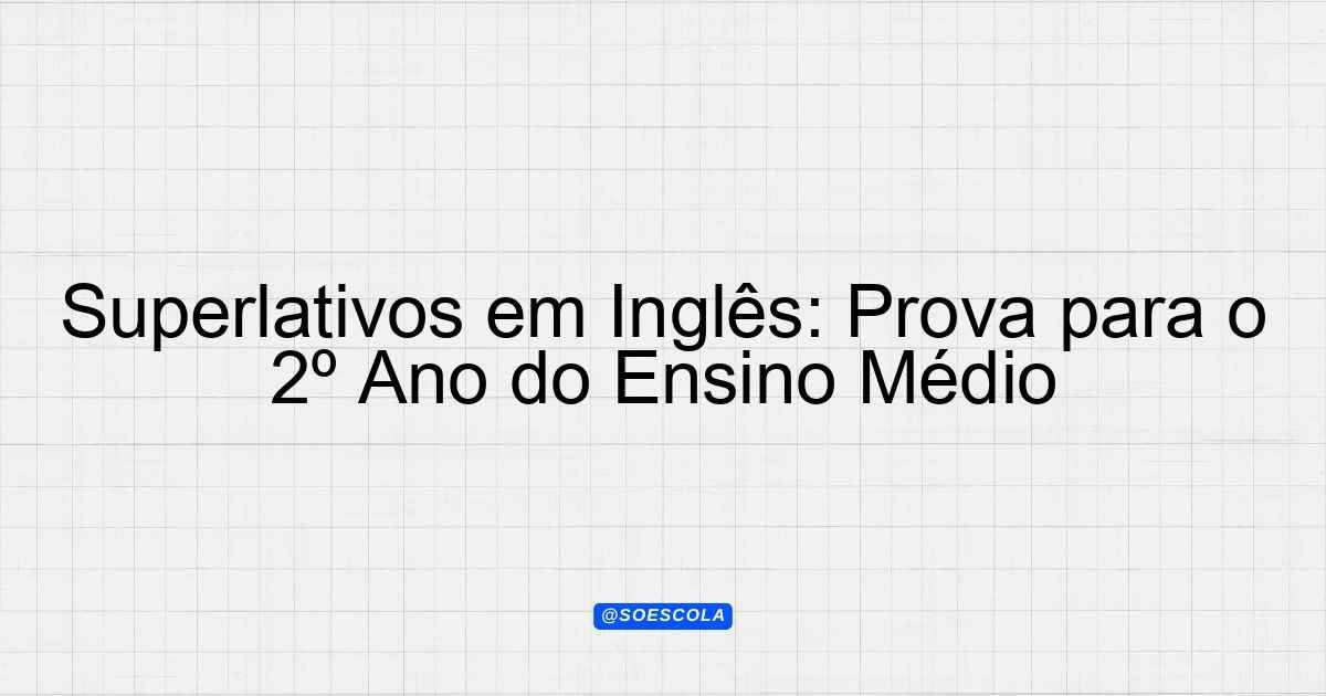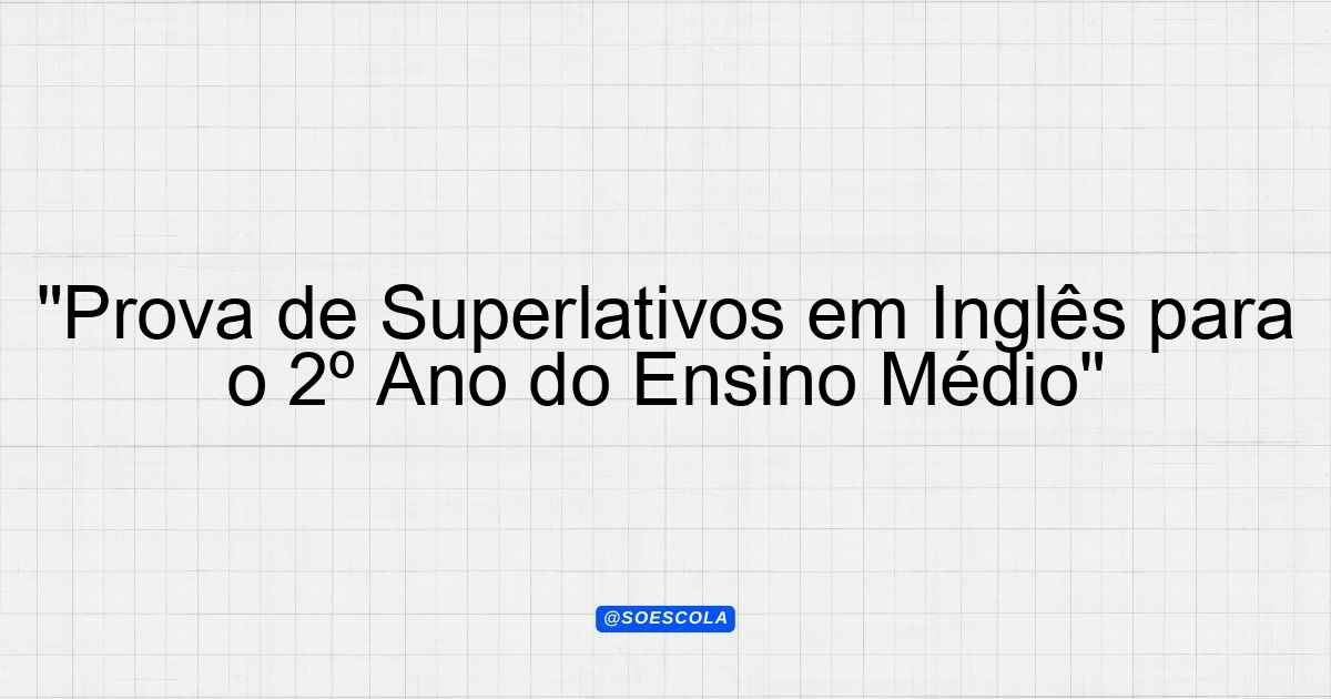 Continue lendoTema: • Superlative;Etapa/Série: 2º ano – Ensino MédioDisciplina: Língua InglesaQuestões: 5 Prova de Língua Inglesa – 2º Ano do Ensino
