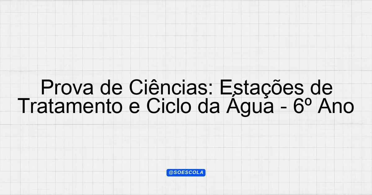 Continue lendoTema: Estação de tratamento de agua, Estação de tratamento de esgoto, ciclo da aguaEtapa/Série: 6º anoDisciplina: CiênciasQuestões: 10 Prova de