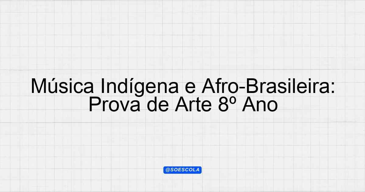 Continue lendoTema: a musica na matriz idigena, e musica na matriz afro_brasileira, e arte e tecnologiaEtapa/Série: 8º anoDisciplina: ArteQuestões: 10 Prova