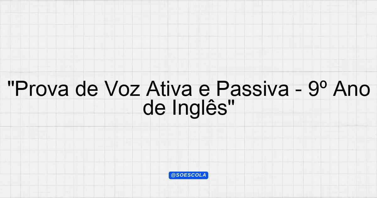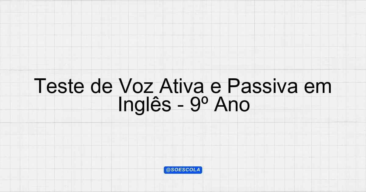 Continue lendoTema: PASSIVE E ACTIVE VOICEEtapa/Série: 9º anoDisciplina: Língua InglesaQuestões: 5 Prova: Passive e Active Voice – 9º Ano Prova: Passive