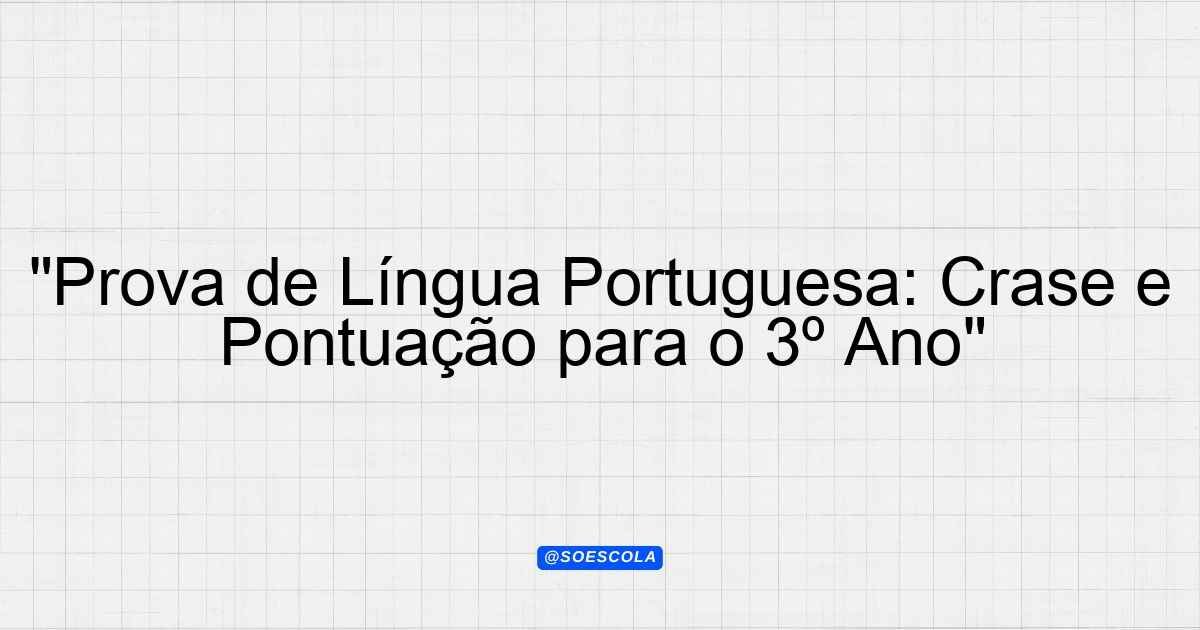 Continue lendoTema: pontuacoes e craseEtapa/Série: 3º ano – Ensino MédioDisciplina: Língua PortuguesaQuestões: 10 Prova de Língua Portuguesa: Pontuações e Crase Nome
