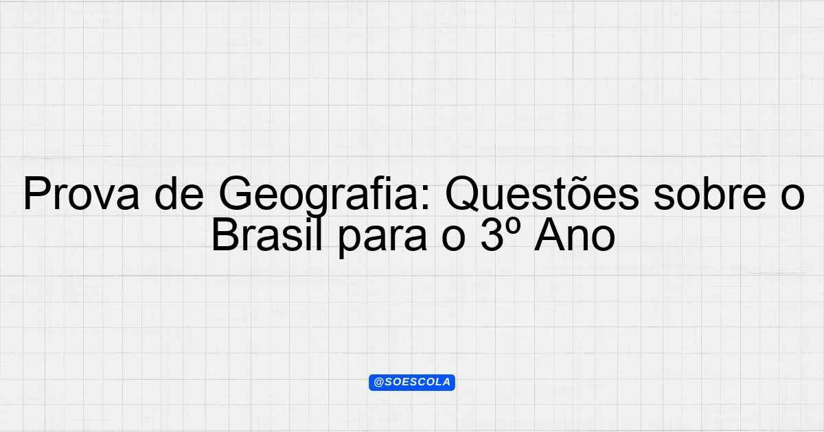 Continue lendoTema: geografia do brasilEtapa/Série: 3º ano – Ensino MédioDisciplina: GeografiaQuestões: 5 Prova de Geografia – 3º Ano do Ensino Médio