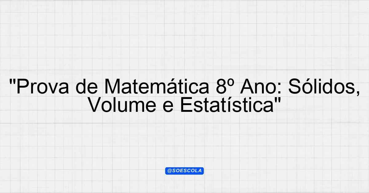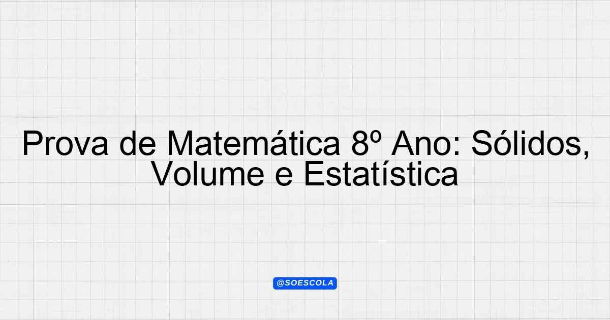 Continue lendoTema: solidos e poliedros, relação entre volume e capacidade, estatistica organização de dadosEtapa/Série: 8º anoDisciplina: MatemáticaQuestões: 10 Prova de Matemática