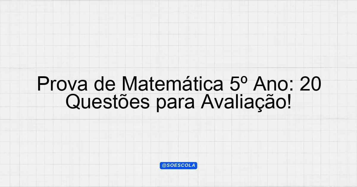 Continue lendoTema: Matemática 6 anoEtapa/Série: 5º anoDisciplina: MatemáticaQuestões: 20 Prova de Matemática – 5º Ano Esta prova tem como objetivo avaliar
