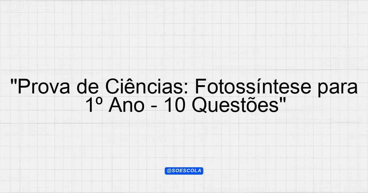 Continue lendoTema: fotossínteseEtapa/Série: 1º anoDisciplina: CiênciasQuestões: 10 Prova de Ciências – Tema: Fotossíntese Nome do Aluno: _____________________________ Data: ____/____/______ Instruções: Leia