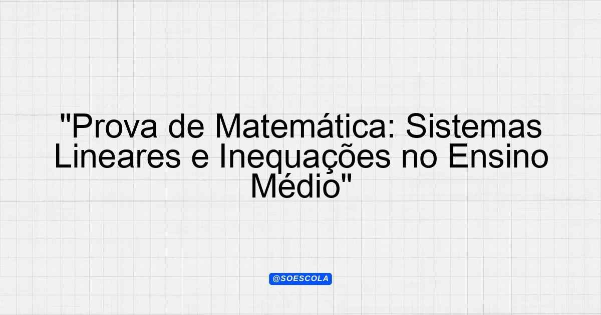 Continue lendoTema: Sistemas Lineares e InequaçõesEtapa/Série: 3º ano – Ensino MédioDisciplina: MatemáticaQuestões: 2 “`html Prova de Matemática – 3º Ano do