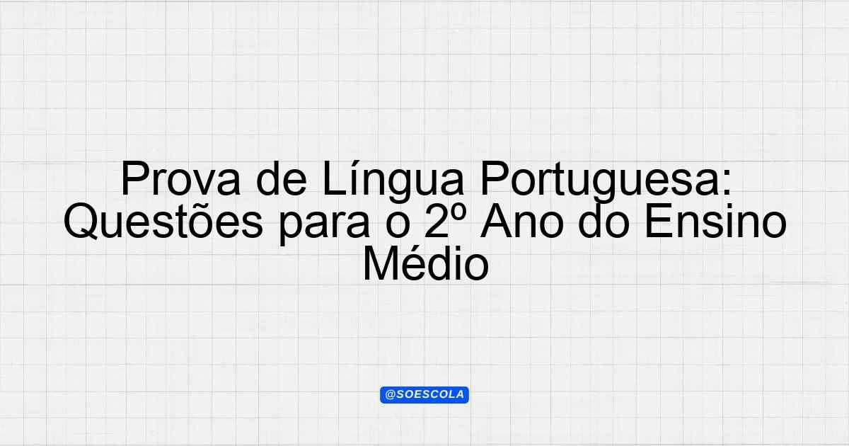 Continue lendoTema: PORTUGIESEtapa/Série: 2º ano – Ensino MédioDisciplina: Língua PortuguesaQuestões: 10 Prova de Língua Portuguesa – 2º Ano do Ensino Médio