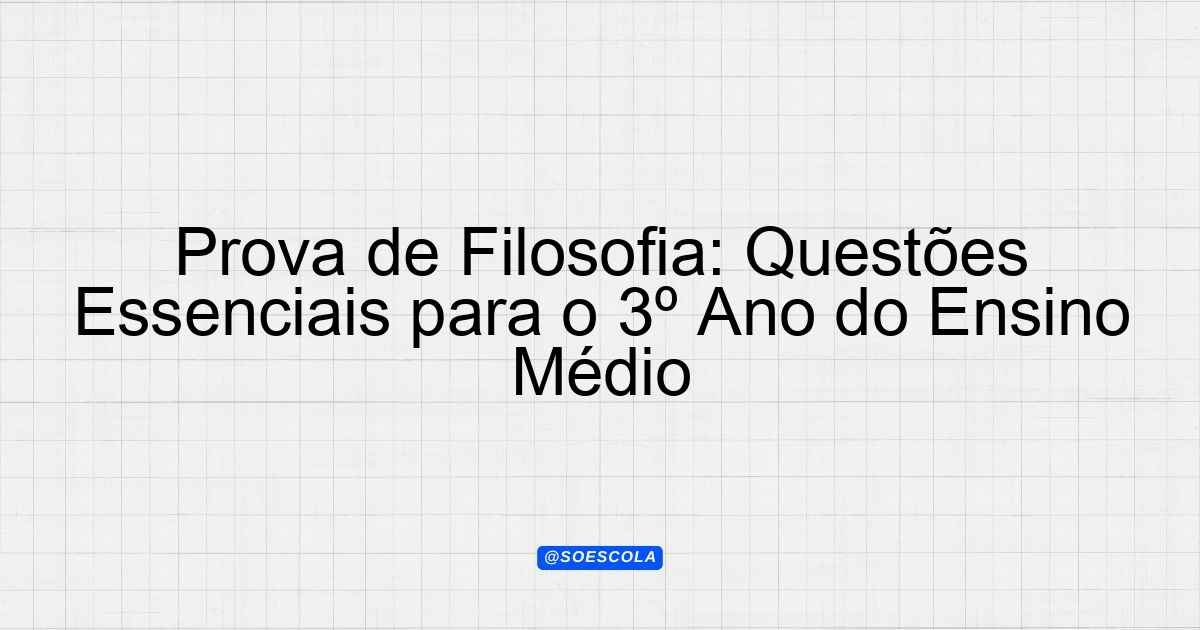 Continue lendoTema: filosofiaEtapa/Série: 3º ano – Ensino MédioDisciplina: FilosofiaQuestões: 10 Prova de Filosofia – 3º Ano do Ensino Médio Instruções: –