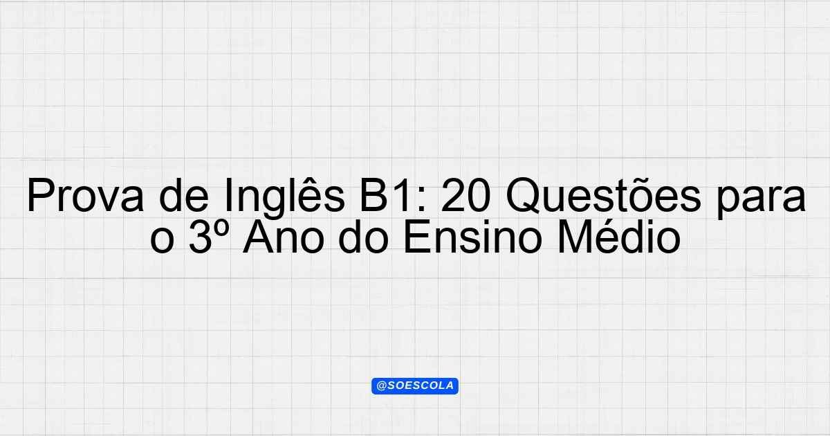 Continue lendoTema: Inglês B1Etapa/Série: 3º ano – Ensino MédioDisciplina: Língua InglesaQuestões: 20 Prova de Língua Inglesa – Inglês B1 Disciplina: Língua