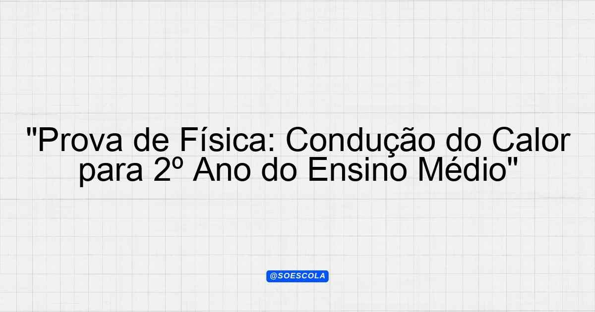 Continue lendoTema: condução do calorEtapa/Série: 2º ano – Ensino MédioDisciplina: FísicaQuestões: 20 Prova de Física – Tema: Condução do Calor Aluno: