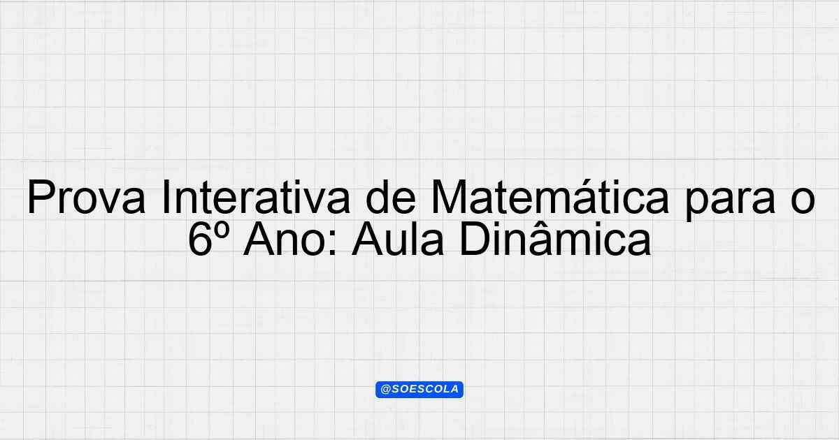 Continue lendoTema: Aula dinâmicaEtapa/Série: 6º anoDisciplina: MatemáticaQuestões: 10 Prova de Matemática – 6º Ano Tema: Aula Dinâmica Data: ___________ Nome: ___________________________________