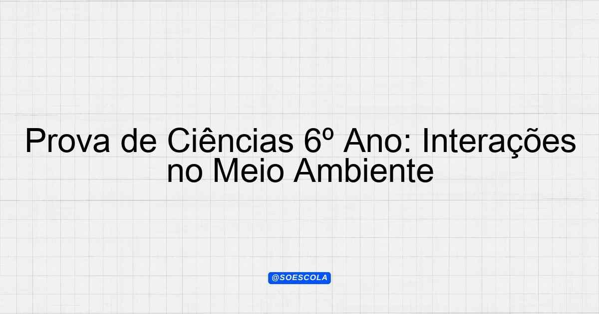 Continue lendoTema: ef06ci02Etapa/Série: 6º anoDisciplina: CiênciasQuestões: 8 Prova de Ciências – 6º Ano Tema: ef06ci02 – Interações entre organismos e o