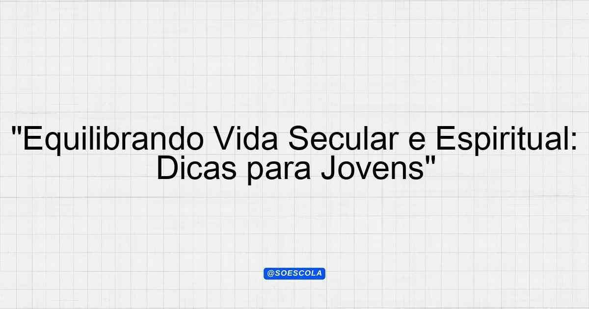 Continue lendoTema: Como os jovens devem administrar a vida secular com a vida espiritual sem perder seus valores?Etapa/Série: 9º anoDisciplina: Ensino