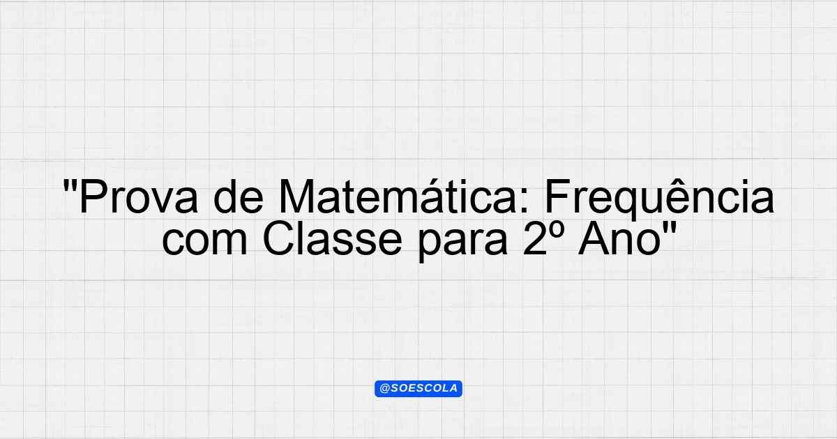 Continue lendoTema: Frequência com classe desde o rolEtapa/Série: 2º ano – Ensino MédioDisciplina: MatemáticaQuestões: 3 Prova de Matemática – 2º Ano