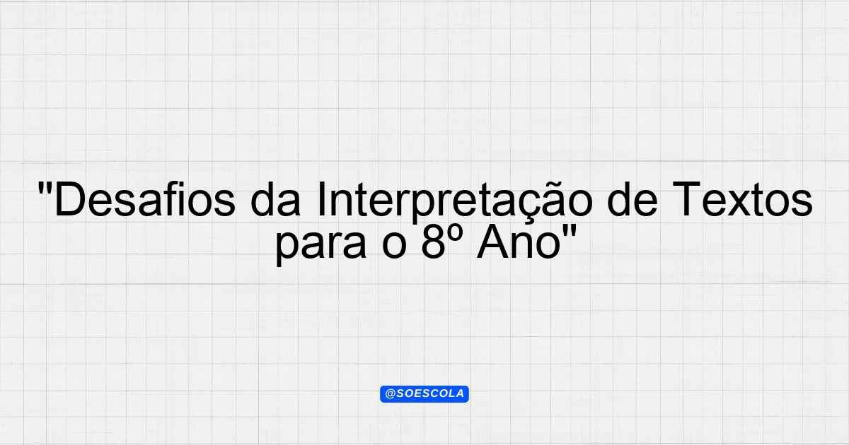 Continue lendoTema: interpretação de textosEtapa/Série: 8º anoDisciplina: Língua PortuguesaQuestões: 20 Prova de Interpretação de Textos – 8º Ano Esta prova tem