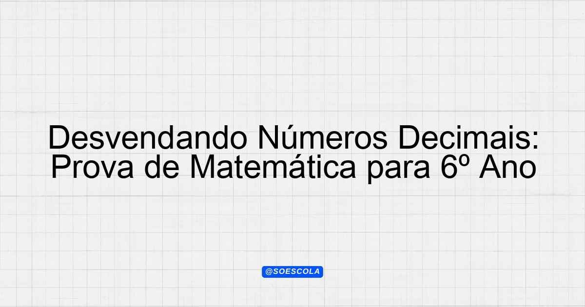 Continue lendoTema: Soma, subtração, multiplicação e divisão de números decimaisEtapa/Série: 6º anoDisciplina: MatemáticaQuestões: 20 Prova de Matemática – 6º Ano Tema: