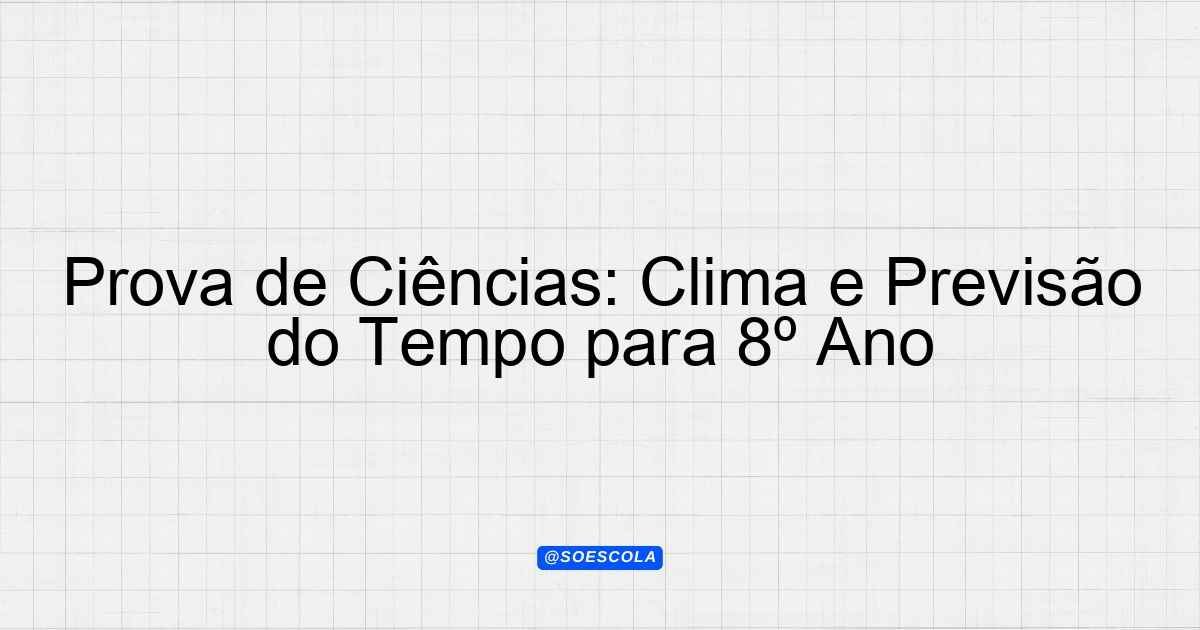 Continue lendoTema: clima e previsão do tempoEtapa/Série: 8º anoDisciplina: CiênciasQuestões: 10 Prova de Ciências – 8º Ano Tema: Clima e Previsão