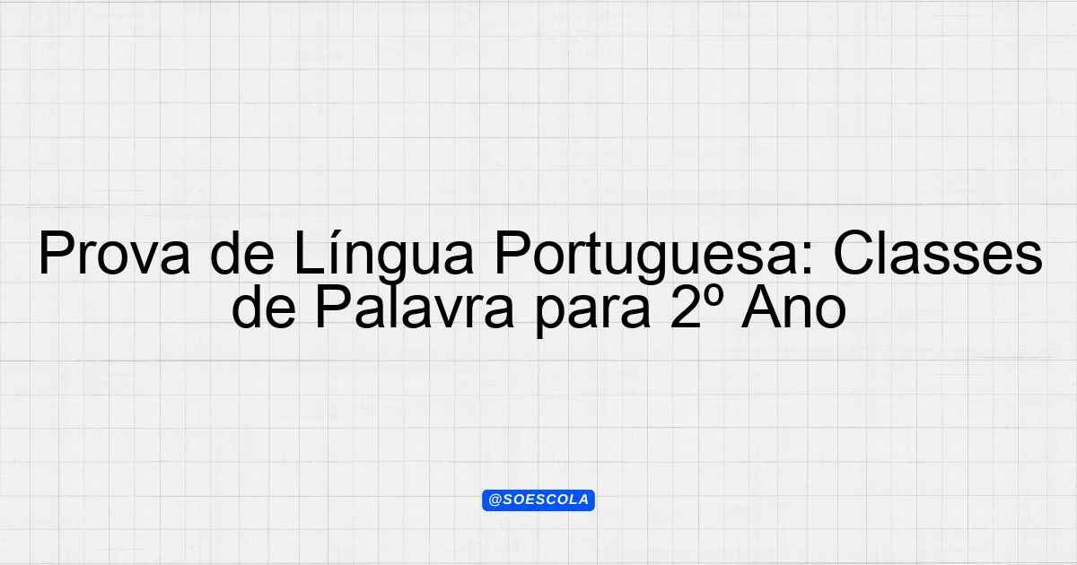 Continue lendoTema: classes de palavraEtapa/Série: 2º ano – Ensino MédioDisciplina: Língua PortuguesaQuestões: 10 Prova de Língua Portuguesa – Classes de Palavra