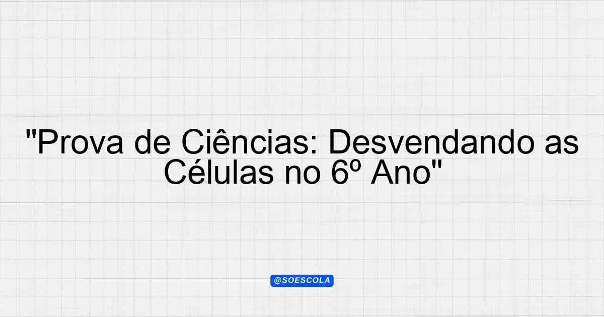 Continue lendoTema: célulasEtapa/Série: 6º anoDisciplina: CiênciasQuestões: 12 Prova de Ciências – Tema: Células Aluno(a): ___________________________ Data: ____/____/____ Professor(a): ___________________________ Instruções Leia