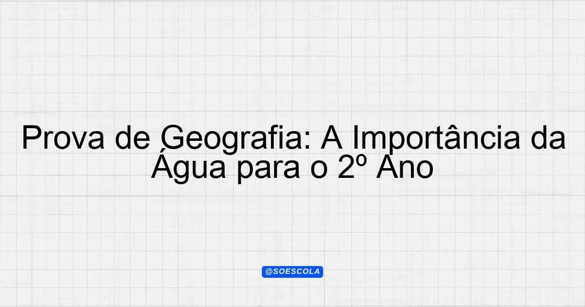 Continue lendoTema: A importãncia da águaEtapa/Série: 2º anoDisciplina: GeografiaQuestões: 10 Prova de Geografia – 2º Ano Tema: A Importância da Água