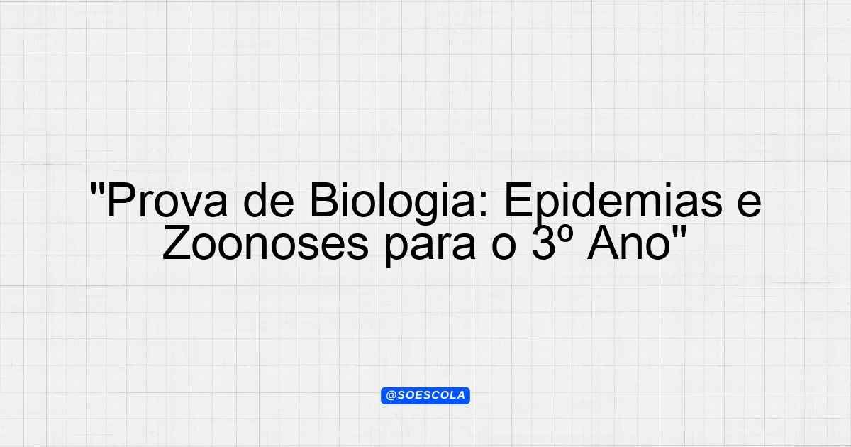 Continue lendoTema: epidemia e zoonosesEtapa/Série: 3º ano – Ensino MédioDisciplina: BiologiaQuestões: 10 Prova de Biologia: Epidemia e Zoonoses Instruções Leia atentamente